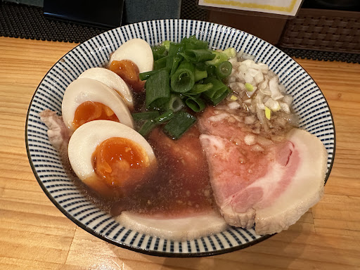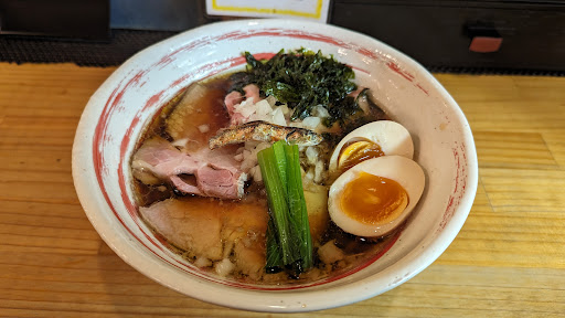 お店に入った時の正直な印象が申し訳ないですが、「風俗店の待合室」みたいな気がしました。 本当に申し訳ないです。 あまり活気は感じられなかったですね。 それでも次から次へとお客さんが入ってくるので人気店なんでしょうね。 味玉煮干しラーメンを注文しました。 少しだけ提供が遅く感じたのですが、 自分より少し遅れて入店したお客さんと同時に提供されました。 う〜ん、これも効率なんでしょうけどね。 スープと麺はそれなり・・・なんです。 麺は太麺で柔らかい麺でした、これがこのスープに1番合うと判断されたのでしょうね。 スープは煮干しの風味がする優しい味でした。 でも「それなり・・・」ですね。 それにトッピングがチャーシューをはじめ、煮卵、ねぎ全てが冷たいんです。 それはどうなんでしょうね? あと、チャーシューはちょっと固くて噛み切り辛かったです。 味も特筆すべきところもなかったですし。 ねきの風味も・・・逆に要らないんじゃないでしょうか? あと、替え玉があるようなんですけど、 わざわざ席を立ってドアを開けて外にある食券機で買わないといけないんでしょうかね? 「それなら別にいいや・・・」って思ってしまいましたね。 それでもグルメサイトの評価はそこそこ高いので何か自分には感じられなかった魅力があるんでしょうね。 まぜそばが売りなんですかね? もし、次の機会があるとしたらそれ...