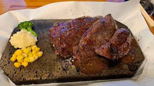 Read moreランチしかいったことありませんが、個人的には いきなりステーキ より美味しくて安いと思います。 建物の表に看板やのぼり旗がありますが、建物だけ見るとステーキ屋があるとは思えない普通の団地の階段を上ると二階のドアに店舗名がありそこで安心する感じです。 駐車場は建物の真裏にある整備された枠ではなく、建物裏側の一見通路風な場所 [...