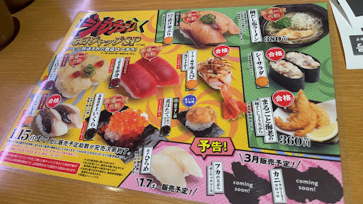Read moreスシローのTVCM見てて今だけいくらが100円で食べれるのを見て私うによりもいくらが好きなので嬉しくて家族に言ったら今日のお昼はスシローで食べようか!って話になって2月27日に家族で昼ちょっと前ぐらいにスシロー遠賀岡垣店さんのお店に初めて伺いました!