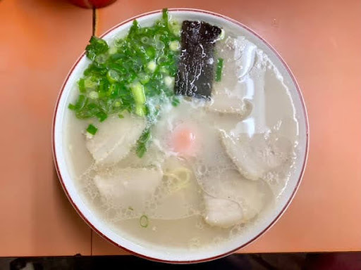 さて、肝心のラーメンですが、スープは意外にアッサリ。カエシの塩分と出汁と豚骨の脂のハーモニーが絶妙ですね。麺は佐賀、大川辺りのずんだれたやわ麺なので、評価が分かれるかもしれませんが、このスープと麺の太さにはやわ麺もアリです。チャーシュー麺にしたので、チャーシューがこれでもかと入っていました。チャーシューは結構な厚切りでしたが、物凄く美味しいという訳ではなかったので、次回は普通のラーメンで良いかな。(個人の好みです) 紅生姜を入れる方はお知らせ下さいとの貼り紙がありましたが、自分はスープの味が変わるのが嫌なので、漬物皿で別に出していただくようにお願いし、快く対応していただきました。 御年配のご夫婦で営まれている、基山の丸幸ラーメンセンター唯一の?暖簾分け店で、大川市のレジェンドラーメン店。出来るだけ長く営業し...