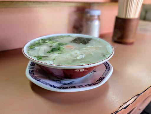 以前ご紹介した大川市榎津にある来々軒と、市内で一二を争うほど昭和レトロ感のあるこちらの店は、佐賀県基山町にある人気店「丸幸ラーメン」の唯一の暖簾分けです。