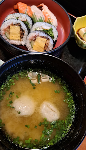 ランチで利用させていただきました。 注文は寿司定食(税別1,400円)、内訳は小鉢、煮物、寿司、茶碗蒸し、吸物、デザート。 寿司は握り7貫、巻き一種2切れですが魚の鮮度がイマイチ。