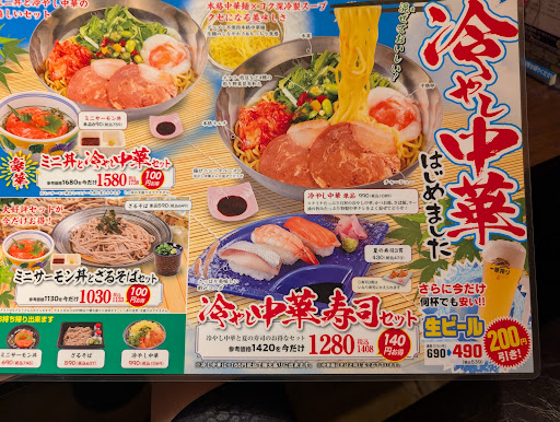Read moreラーメン屋さんの冷やし中華を食べるつもりでしたがポスターの冷やし中華セット¥1280が目にとまり訪問しました。 庄屋グループなんだと思いながら待つと春寿司(エビ、サーモン、青魚)+冷やし中華が来ました。 冷やし中華はいつも食べている感じではなくオクラが入っているせいか野菜感たっぷりの冷やし中華でした。女性ウケを狙ったのでしょう。 食事は普通でしたが会計をする時¥1408と言われなんだか残念な気持ちになりました。今時税込価格表示が当たり前の時代¥1280を大きくメインに置き、申し訳なさそうに小さく税込価格を書く会社の姿勢にげんなりしてしまいました。あえてこういう会社の姿勢のお店は再度行く気になりませ...