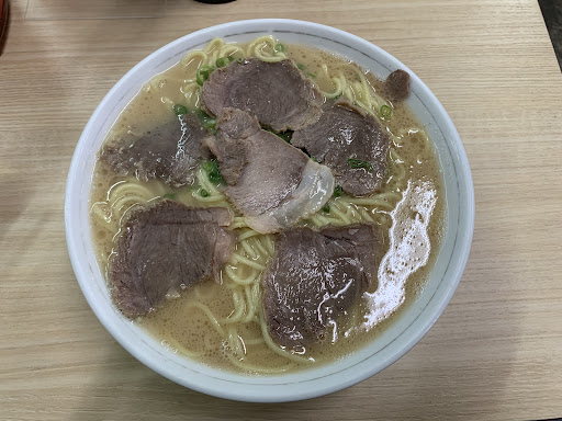 画像はラーメン大盛りです。 いざ、ラーメンを注文して運ばれてきた第一印象は焼豚が黒ぽいくどいっぱい入ってる。 スープは見た感じだと大龍系に似た感じです。 スープを飲んでみると美味い! 大龍のスープの塩味を抜いた感じで、豚骨臭も無く美味しいです。 麺は中太の黄色いストレート麺でした。 焼豚は塩味が強いです。 ラーメンは店舗外見から想像するより遥かに美味しかった。 駐車場は店舗隣りの空き地です。 縦に止めれば4台は駐車出来ると思いますが、息子さんのレクサスが止めてあると3台しか置けません。 老夫婦が営む小さな昭和の雰囲気が漂うお店。 ラーメン好きな方は是非と...