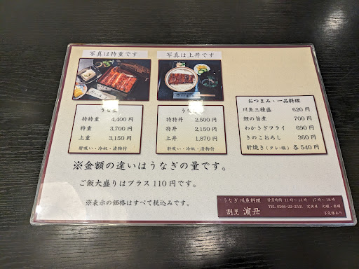 得々重4400円を注文し待つこと暫し。 これで4400円はお得すぎる!という鰻が登場。 素晴らしく美味しいです。 香りも良くパリッと感がある地焼きの鰻。 江戸風の蒸したやつも美味いけども、濃厚な地焼きはやはり旨い! いやー、お得に素晴らしい鰻を堪能させていただきました。 帰りに待ち席で地元のご年配3人組の方と少し会話。 『ここが岡谷で1番だから!』 はい、その通り美味しい鰻をいただきま...