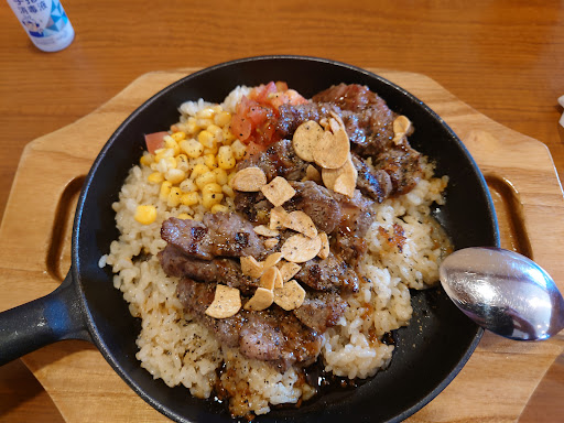 Read more大俵ハンバーグはオススメしません。 見た目とボリューム、そして自分で焼くそのスタイルについつい惹かれて頼んでしまいましたが欠点だらけです。 俵状に成型したハンバーグの周りだけをこんがり焼いて縦に半分にカットした状態で提供され、それを一緒に出される固形燃料で熱するミニ鉄板で中までしっかり焼いて食べるのですが、周りカリカリで中は生ですので、ミニ鉄板に乗せられる大きさにカットする段階でボロボロになりやすいです。 そして、普通ハンバーグって、周りをこんがり焼いて中に肉汁閉じ込める焼き方だと思いますが、これは真っ二つにカットしてあるのを再度焼きますので、中まで火が通った時には肉汁流れ出してパサパサで固いハンバーグに成り果てています。 そして常にハンバーグのお世話を強いられますので、誰かと一緒の食事だったとしても、全然落ち着けなくて会話も弾まないかも? そしてそんなモノなのにお値段は他のよりも高いです。 ぶっちゃけこれって、生焼け状態で出せるからお店側の調理時間が短くて楽、で稼げるから稼ぎ頭なのでしょう。 次行った時には絶対頼まないぞと心に誓うのですが、多分次行くのは随分先になると思いますので、その時にはこの反省を忘れてまた騙されて...