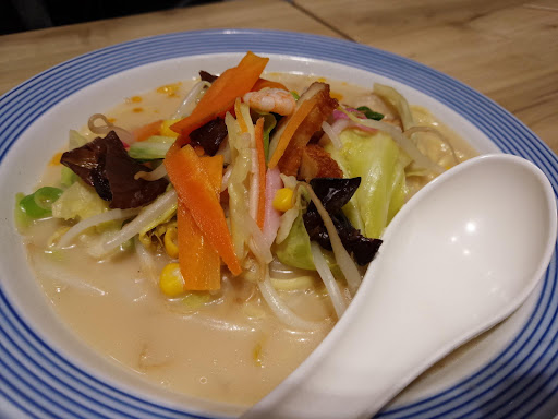 きくらげたっぷり塩ちゃんぽんと餃子をいただいた 野菜たっぷりちゃんぽんに入ってるきくらげの倍くらいのきくらげが入っており野菜は野菜たっぷりちゃんぽんと比べるとやや少な目でおいしい スープをやさいたっぷりちゃんぽんのスープにしたらもっとおいしいと思われる 餃子はそのへんで食べる事が出来そう...
