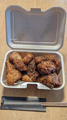 Read more看板がずっと気になってたので寄ってみました。 モモの唐揚げ(タレ)を2つ購入させて頂きました。 500円のお弁当でクオリティ的に高い方だと思います。唐揚げ4つでご飯がかなり進みます。箸休めで、スクランブルエッグと漬物を食べると尚良いと思います。 食べ進めると、4つでは物足りないぐらいパクパク行けるので、また買いに行きたいという衝動になります笑笑 モモの唐揚げは、柔らかくて、とても美味しい味になってます。 看板は今流行りなのかすごく気になる仕様で、内装はスヌーピーの壁紙だったり落ち着いた雰囲気があります。 上記は良い点を上げましたが、少し評価点を下げた所で言えば、個人的には券売機は嫌いなのと入って直ぐに店員さんの顔が見えず券売機なのが残念でした。 でも、味は良かったので毎日の弁当に入れたいぐらい唐揚げが良かった!仕事帰りに寄って次の日の弁当に入れようと思います。 これからも頑張って下さい!!応援...