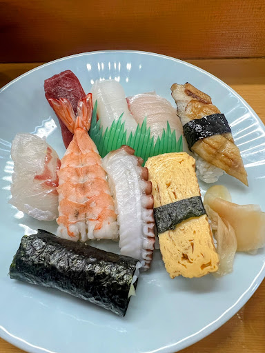 昔ながらの職人さんが握るにぎりで、焼き穴子があったり、海老も大きくて、どれもおいしいです とくに、私はマグロの赤身は苦手なのですがこちらのは旨味を感じました 全体的に上品なやさしい味付けでよかったです