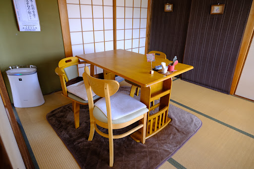 玄関で靴を抜いて入店、座敷テーブル席や和室座卓席と多様な構成、前日予約で奥のテーブル席に案内頂きます。