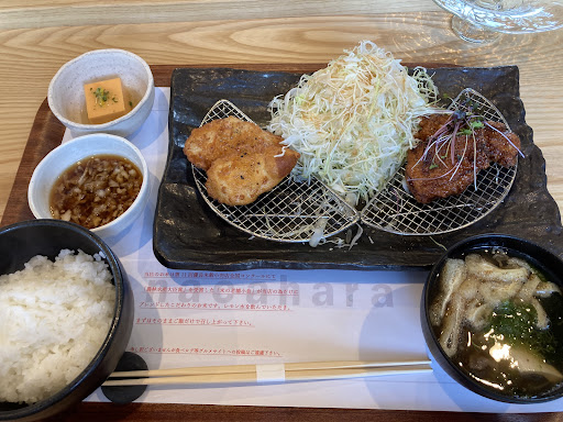 店舗前に3台分あり。ただしそのうち1台は軽自動車専用。2軒隣の家に駐車場2台分置かせてもらえる。 土曜日来店。予約したほうが待つことなく確実。人気店のためこの日はオープンから予約席でいっぱい。 価格設定は少しお高め。だがその価値アリ。 店内は6席のカウンター席の小さな店舗。 券売機で購入して着席。 席に水が出る蛇口があり。コップにレモン入ってるので口がさっぱりする。 もも唐揚げ黒胡椒ソースを注文。唐揚げ1個単品で追加。 店主がワンオペで1注文づつの調理のためかなり提供まで時間がかかる。仕事中の昼休みなど時間制限あるときには利用はできないかな。 唐揚げはジューシーで、味噌汁は具たっぷりでブリが美味い。 ご飯もこだわりあるようで特別にブレンドされたもの。ただご飯はいつも家で食べてる米のほうが好み。 おかわり1杯無料。生卵を注文すれば醬油を提供してくれ卵かけご飯で食べられます。 店主のこだわり満載で人気店なのがわかる味でした。 メニューも色々変更あるし夜には不定期で他店とのコラボイベントなどやられています。予約...