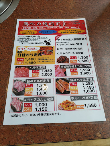 「ハラミ定食200g・1500円」と「旨みカルビ定食200g・1100円」を注文です。