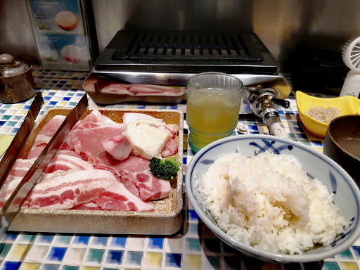 Found this by accident while grocery shopping downstairs in basement. Smelled cooking meat and I was happy I stopped by. No English but I used google translate on the phone and had the recommended mixed meat set. Beef pork and chicken. 2000 yen for the set and then I also had a draft beer. I was alone as were many others and I had a solo booth with...