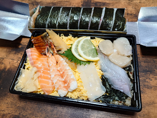 Read more<2024年11月> ちらし寿司と上巻き寿司をテイクアウト、夕餉で頂きました。ちらし寿司のネタは大きいですね、寿司ネタだと思います。ご飯は干瓢片を混ぜ込んだ酢飯になっています。巻き寿司は海老入り、具材が大きめ、美味しく頂きました。