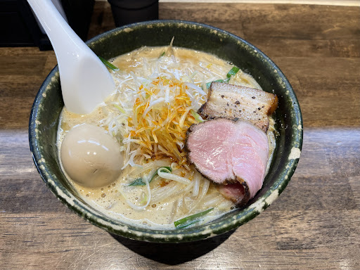 Read more味玉味噌ラーメン980円を食べました。 小雨ぱらつく平日に行ったけど、開店20分前ぐらいに行ってすでに40〜50人くらい並んでた…。 味は文句なく美味しかったです!かなり濃厚な甘味噌仕立て。麺は太麺で普通盛でも割と量があります。もやしが多いからかな?大盛にした夫も、普通盛でも良かったかなーって言ってました。 まあ、ヒカキンが言うような日本一の味噌ラーメンというのは言い過ぎと思うけど、リピートしたい美味しさだと思います!サービスで出してくれる一口サイズのジャスミンティーも爽やかでよかった!!