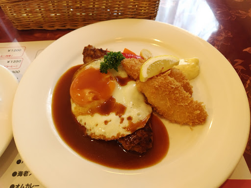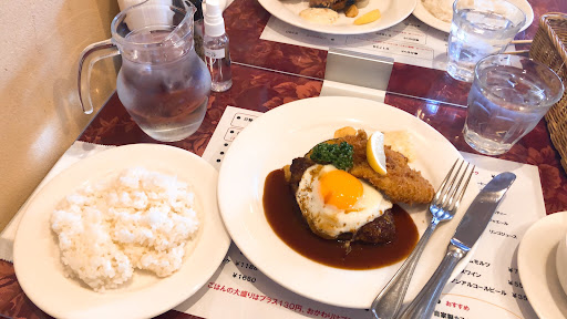 Read moreお店はレトロな雰囲気で昔ながらの洋食屋さんって感じです♪ お店に入店するとミュシャの絵が沢山飾られてました♪ 今回は日替わりをオーダー ハンバーグとカレイのフライの盛り合わせにスープとサラダとライス、食後にブレンドコーヒーがついてきました♪ ハンバーグはジューシーで上に目玉焼きが乗っているので黄身に絡めデミグラスソースと一緒に食べるととても美味しかったです♪ カレイのフライは初めて食べました♪ レモン汁を絞ってたっぷりのタルタルソースをつけて食べるととても美味しかったです♪ 今回平日に行ったのですが人が多くピーク時には満員になりました! 席数もそこまで多くないので大人数で行く場合は電話で予約した方がいいかもしれません! 後、お店の入り口にも書かれていますが6歳未満のお子様の入店はお断りしているそうです!