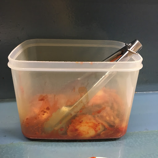 Simple space with counter & table seating, serving ramen bowls, kimchi & dumplings.