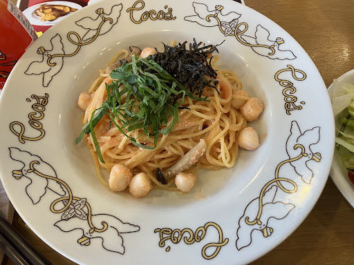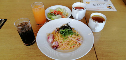 久しぶりだったので、メニューは秋メニューに変わってました。 ランチメニューがあったので、ランチの明太子のパスタセット頼みました! サラダとドリンクとスープバーもついて、この価格ならお得な気がします。 パスタ、美味しかったですー!!! きのこでボリュームもあって、大葉と明太子がすごくあってました。 明太子のパスタって、ボリュームないイメージあったんですけど、具沢山で満足度高いです。 リピありかな〜って思います^^ 塩辛いとかもなく、ちょうどいい塩梅でした。 ドリンクバーの種類も充実していて、ゆっくりおしゃべりして、予定がないと長居しちゃいそう笑。 秋のデザートメニューも充実しているので、カフェ利用も良さそうです。...