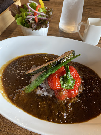 Read more高島駅南口から徒歩圏内にある、ゆっくり過ごせるカフェです。 モーニング・ランチ・カフェタイムと、どの時間帯のメニューも「美味しい」との評判しか聞いたことがありません。 日曜日の11時ごろランチに伺い、特製薬膳カレーを頂きました。待つこと5分ほどで配膳されました。スパイシーないい香りが食欲をそそります。ルーには漢方が5種類入っているとか。漢方独特の味も香りも、スパイスがいい具合に打ち消してくれていました。少し辛めのお味は、雑穀米とその上に乗っている大きめな野菜の甘味とよく合います。 充分なボリュームがあり、男性でもお腹いっぱいになるかと思います。このカレーにサラダとドリンクがついて1280円(税別)はお得。 ただ…素揚げされた野菜が本当に大きめで、フォークでも切れず大口開けてかじりつくしかなかったです。デートでは注文できないかな笑。 この日頂いたコーヒーはスッキリとした味わいで、酸味と苦味のバランスがよく残暑厳しい日にピッタリでした。 駐車場は4台ほどあり、比較的出入りしやすいのは嬉しいポイントです。 店内も店員さんも落ち着いた雰囲気で、ゆっくり過ごせるカフェでした。次はモーニン...