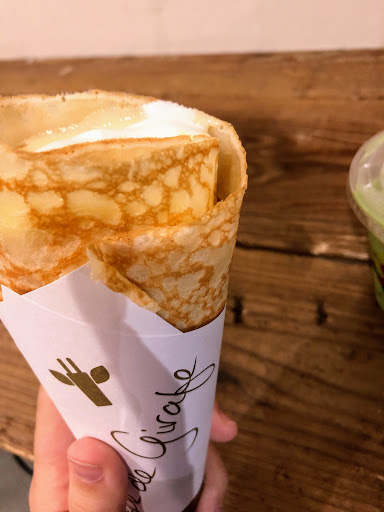 *Notes I have when I read other reviews: This is a small dessert spot where you spend maybe 15-20min, not a Michelin star restaurant, so stop expecting high-end service. Also, it's commonplace not to bring in food or drinks from outside. There were signs up saying not to bring anything from outside, so just follow the rules. Lastly, the average customer will spend between 400 and 1000 yen, which is a low amount. If the owner has to invest in a credit card machine, he loses 4-5% on each transaction, plus the cost of the equipment on top. So stop complaining and go get cash at the ATM. The crêpes taste amazing and that's the most important...