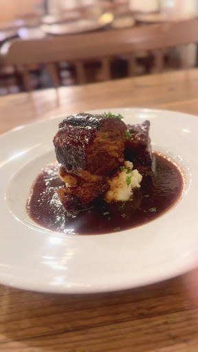 ・牛バラ肉の赤ワイン煮込み🍷 脂がトロトロに煮込まれ、筋繊維が1本1本ほぐれる肉質✨ お肉を甘口に仕上げられたソースに絡め、マッシュポテトも添えて食べると美味しい😋 バゲットが欲しくなりました🤣