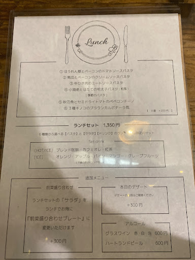 ランチはランチメニューの6品ほどの中からしかパスタが選べません。 ランチメニュー以外のパスタも美味しいのになー