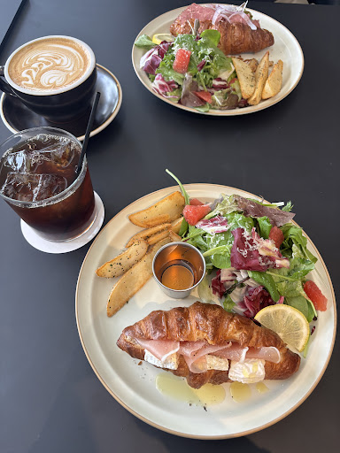 店内はとても広々としていて開放感があり ベビーカーということで店員さんに座りやすい席を用意していただきありがたかったです。 クロワッサンサンドと...