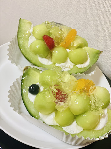 7割メロンで構成されたケーキ🍰 メロンの下に少しだけ生地とクリームが入ってました。ほぼフルーツなのでサッパリしてて美味しい✨食後にもぴったりです。