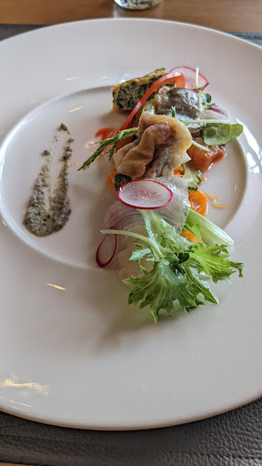 Read more前菜・スープ・パスタ・メイン・デザートどれも美味しかったです♪ 前菜の盛り付けは綺麗で崩すのが勿体ないと思いつつも美味しく頂きました♪ スープは白菜とジャガイモの冷製スープ♪ 優しい口当たりのスープで美味しかったです♪ パスタはイノシシ肉のボロネーゼトマトソースパスタを選びました♪ イノシシ肉が使われていましたが臭みもなくこれも美味しく頂きました♪ メインの豚ホホ肉の煮込みはナイフが必要ないほどホロホロに柔らかくペロリと食べちゃいました♪ デザートの白胡麻のパンナコッタも白胡麻の風味がしっかり残っていて美味しかったです♪ 他の方も書かれてましたがお料理の器も素敵で目も楽しめて お料理はどれも美味しくてとても大満足なランチが出来ました♪