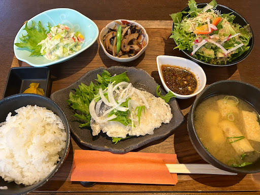 お魚のランチをいただきました!この日はサワラのネギだれ♪鰆ぶりんぶりん♪ネギだれでご飯が進むすすむ!小鉢も手の込んだ味わいでどれもとっても美味しい!