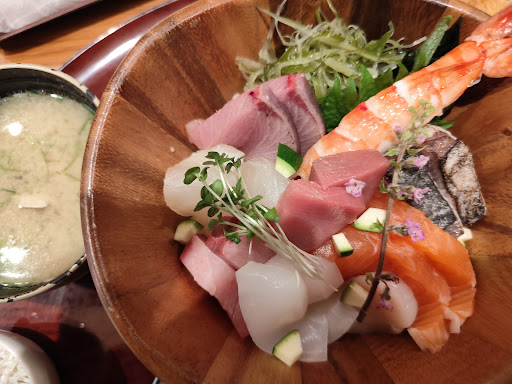 Read moreI had the seafood bowl for lunch. There is rice topped with ample sashimi surrounded by various mysterious dishes, but apart from the soy, miso soup and a tahini like paste I have no idea what they were. Unfortunately they don't speak English so not sure why it worked out at 2400 when marked price was 1800, maybe companions extra tea? But these are quibbles, the food was amazing, another level to what I am familiar with. The place is nicely designed but was fairly empty...