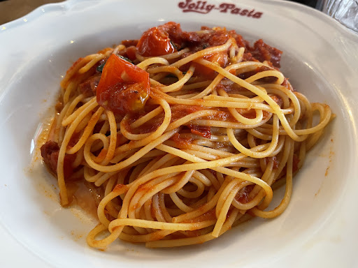 Read more安定のジョリーパスタですね。ちょっとファミレス的なお店としては一品のボリュームが物足りないのと価格設定が高めなんですが(全メニューあと100円ずつ安かったら文句なし)、いつも混雑してるこちらのお店を見ていると人気の程が伺えます。