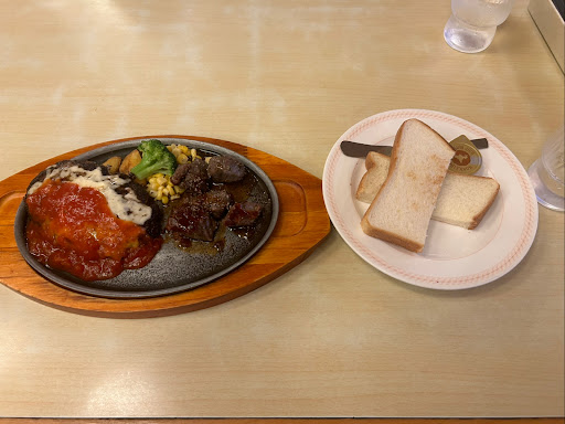 Read more総じて安い価格設定。メニューの写真は美味そうに見えるが、実際はかなり低レベル。噛み切れないサイコロステーキや、コーンスープ以外は薄めのスープ2種。また、天井の照明で昼光色と昼白色が混在したままというのもどうかと思う。間違えて設置して、それを正さないのはどういうことか店の姿勢に疑問。星も付けたくなかったが、店員さんの丁寧な応対にだけ評価したい。率先して...