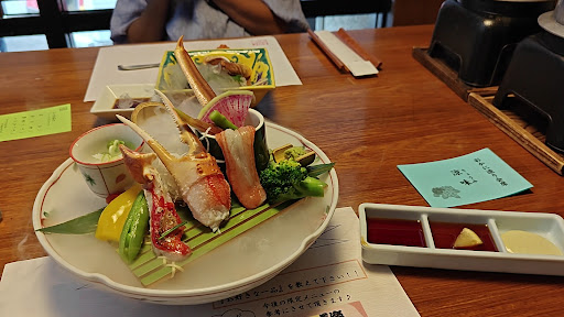 【OLD】 やはりカニ味噌は最高!やはりグラタンは最高!やはり焼きガニも最高!香住や浜坂まで車を飛ばす元気はもうないけど、かに道楽がうまいから、これで良し。先般雪が降る前に訪れた、三朝・依山楼のカニよりも美味か?!?(今回は、柚咲・ 凪咲・心咲をシェアしました。)てんぷらも美味いなあ。 [End of the year] Crab miso is still the best! Gratin is the best! Grilled crab is also the best! I don't have the energy to drive to Kasumi or Hamasaka anymore, but I'm good at crab entertainment, so this is fine. Is it as delicious as the crabs of Misasa and Izanro, which I visited before the snow fell the other day? ! ? (This time, we shared Yuzusaki, Nagisa, and Kokorosaki.) The tempura is also delicious. 【更にNEW!】今年は【グランドメニュー改訂のお知らせ】と記載されて、さらに大きくメニューが変更されていました。凪咲、心咲、美咲を家族でシェアしましたが、コストは上昇したものの、品質はアップしていましたので、問題はありませんでした。資源枯渇やコロナ下でのインフレなど、企業経営には困難が伴いますが、品質(クオリティー)の維持は、コスト・デリバリーと共にやはり重要な因子ですね。 [More NEW!] This year, it was described as [Notice of Grand Menu Revision], and the menu was changed even more. We shared Nagisa, Kokorosaki and Misaki with our family and although the cost was higher, the quality was up so it wasn't a problem. There are difficulties in corporate management, such as resource depletion and inflation under COVID-19, but maintaining quality is an important factor along with cost and delivery. 【NEW!】昨年とはメニュー名が変わっていました。 かに脚ステーキが食べたかったので琴姫を頼みました。別売りで店舗でも販売していますが、カニ味噌のバーニャカウダが絶品です。妻はお造りがある、幸楽でしたが、それなりに満足です。三朝温泉か湯郷温泉で旬のカニを味わいたかったですが、今年は無理ですね。 【OLD】2月に続いて、3月にも再訪しました。同じメニューでしたが、妻曰く、鮮度も味わいも極めてレベルアップ、とのことでした。個人的には妻からもらった蟹の釜飯が美味でした。 [NEW!] The menu name has changed from last year. I wanted to eat crab leg steak, so I ordered Kotohime. It is sold separately at the store, but the crab miso bagna cauda is exquisite. Her wife was happy with the sashimi, but she was reasonably satisfied. I wanted to try seasonal crabs at Misasa Onsen or Yunogo Onsen, but it's impossible this year. [OLD] Following February, I visited again in March. It was the same menu, but my wife said that the freshness and taste were extremely improved. Personally, the crab kamameshi I got from my girlfriend's wife was delicious.