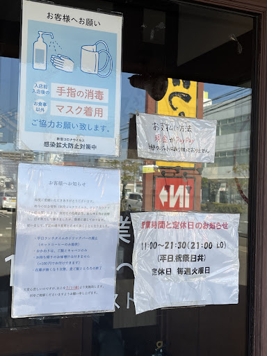 倉敷店と東岡山店は何度もお邪魔してましたが今店には初めて来ました 人気の少なくなった13時過ぎに訪問 自分より前に1名二組がマスク無しでの入店~着席 店員は一切の注意喚起無しでカウンター席の両端に案内されてました トラブルに繋がるので注意しなかったのでしょうか? その後に遅れて入店したところ、他に席が多数空いてるにも関わらずそのマスク無しの老人客の間に案内されました。