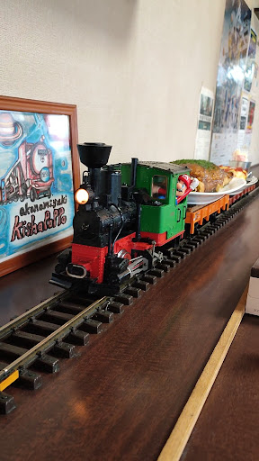 Read more焼きそば大盛を頂いてます。 ソースが自家製なのか、スパイシーの中に甘みを感じる。 濃い味では無く、食べた後に喉があまり乾かない。 ザクザクキャベツがJUICY! 麺も中太麺でしょうか? あっさりした味わいを楽しむ事ができます。 有名なのは店名がきしゃぽっぽだけにテーブル席は店の両サイドに設けられたレールに乗ったきしゃが料理を配膳します。 これはユニークですね。 きしゃもかなり前から使用している感があり趣良しですね。