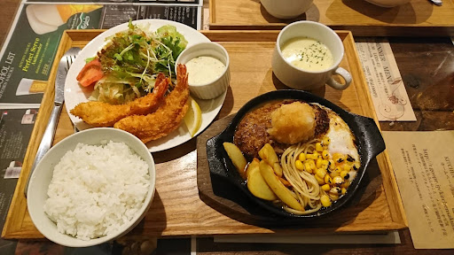 私が食べたエビフライは 以前より確実に衣が多い! 衣がゴツゴツ… エビが小さくなったのを 誤魔化しているのかな? ハンバーグは好みが分かれそう。 連れは柔らかすぎて 汚らしくなったから 半分以上残していました。
