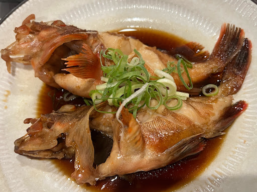メバルは何と2尾付け 型は小から中ぐらい。甘辛の強めの煮付け具合でこれはごはんに合うかっ