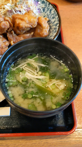 初めてお邪魔しました。 お店の存在は知っていましたが いつもお店の前にお客さんが並んでおり 気になっていました。 開店15分前に到着。 どうやらお昼の定食は限定20食。 開店少し前に入店。 あれよあれよとお客さんでいっぱい。 開店早々に20食は完売。 常連さんが多いようです。 早めに来たから入れましたが ビギナーには難易度高め。 定食のビジュアルが凄い。 また内容の充実振りに驚く。 本日のメインは唐揚げに甘辛いタレが かかったもの。 小鉢も充実。 ナスの煮浸しがとてもおいしかった。 特筆はやはりお味噌汁のおいしさ。 お味噌汁がおいしいお店は料理も旨い。 しかもこの内容で¥900。 もう脱帽です。 このお店はとてもいい。 でも来る時は開店より早めに来ないと 限定20食にはあり付けない。 もう大満足。 また夜もお邪魔したいと思いました...