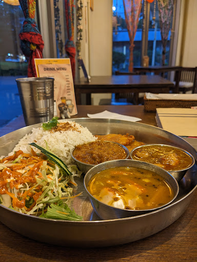Interior is so spacious and nice. Really pretty decorations. Tables are large and comfortable. English menu available. The guy who runs the front of the store speaks great English 👍👍 Very understanding of allergies and dietary restrictions. I have a terrible cashew dairy allergy and had absolutely no issue here. The waiter double checked everything with me and was so accommodating. Helped me order something delicious and safe! Portion sizes good with a lot of rice and some little side dishes too. This is the best food I have had in Japan in a long time. So flavorful and everything worked together very well. If you are transferring from the shinkansen at Okayama and have some time I'd definitely come here for lunch or dinner. Super close to the station and...