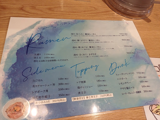 清め・染(しむ) 醤油らーめん ¥930 清め・環(めぐる) 醤油らーめん ¥950 煮玉子トッピン ¥110