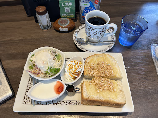 Read more朝7時から開いているので、モーニングを食べるために寄りました。価格を考えると、こんなものかなと思います。トーストだけなら、サービスで付きますが、サラダは別料金です。 岡山市内に2軒と倉敷に1軒の岡山県内に3軒しかない、ある意味で貴重なカフェです。 倉敷のお店には、何度も行ったことがありますが、そことは店の雰囲気が結構違います。ここも悪くはない。ただ、私は倉敷のお店の方が好きですし、落ち着きますね。コーヒーを飲むだけなら、スタバで良いかなと思いますが、モーニングとか、ランチとかするなら、ここの方が良いですね。マックよりは、ずっと落ち着いた雰囲気なので、悪くはないです。ジャスコ跡のイオンスタイルの中にあるので、30号線からは直線入れないので、ここだけ行くな...