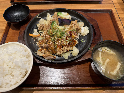 ハンバーグにエビフライ、牡蠣フライのランチを頂きました。待つこと少々で熱々鉄板で運ばれて来ました。が、来てる時から焦げた臭いが…。まるで野焼きみたいな臭いは配膳してくれた店員さんにも分かってるはず。すぐにハンバーグをよけて野菜を混ぜましたが半分以上は焦げで食べられませんでした。残念です。レモンティーを追加注文して下膳してもらったので焦げも確認されてると思いますが店員さんはそれには触れず。いつもそうなのかと思いました。ハーフサイズのサラダでもあれば追加注文したかったです。 レモンティーはポーションのレモン汁ではなくてカットレモンが添えられていました。ちょっとうれしい。 店員さんは名札を付けていました。...