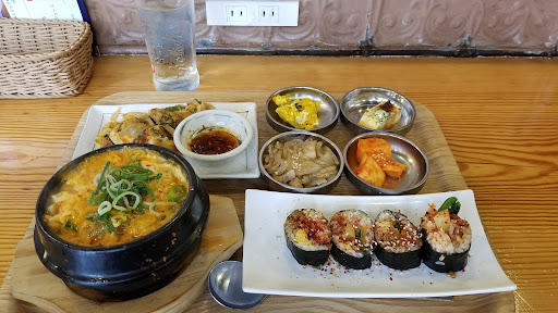 口コミをみると、評判がいいので期待してお邪魔しました。 予約していったので、待つことなくカウンター通されました。 店構えはかなり小ぶりで狭いな~という印象です。 カウンターの目の前に厨房がありました。7月にお邪魔したのですが、店内のエアコンは全く効いておらず、なのに入り口はドア全開です。(暑っ) そんな中で注文したのはチゲとキンパランチです。一緒に行った相方はチゲとチーズキンパランチです。 4種類のおかずも付いてて見た目はいい感じです。 期待感が膨らみます~先ずはチゲから!う~ん「塩辛い‼」よく食べるチゲとはお味が違います。 市販の塩鍋のスープを韓国ティストにした感じでした。 キンパは普通に美味しかったです。 付け合わせのおかずはランチと言うこともあり、やっつけ感はいなめません、大根キムチは食感なく、スーパーの安い大根キムチを連想させられます。 春雨の炒め物も春雨がプチプチ切れてて残り物か?カボチャのサラダも既製品な感じがします。 玉子焼きのおかずは普通です。 ランチを食べた感想は塩辛かったり、既成品ぽかったりで「美味しかった~また来よう」って感じではありませんでした。 あと、店内が汚いと思いました。ランチを食べてる目の前にはチャミスルのボトルがディスプレィされているのですが、調理場の油がまとわりつき、そこにほこりがくっついていて掃除をあまりしないのかな?と食べている間ずっと思っていました。 やはりと言うか、いやな予感は的中で相方のチーズキンパからは人毛が~ああ、結構食べた後だし、スタッフさんには何も言わずにそのまま、ご馳走様しました。 口コミにあるように特にスタッフの方の愛想もいいわけでもいなく普通でした。 女性向きのお店にしては、問題が多い気がしますが、こ...