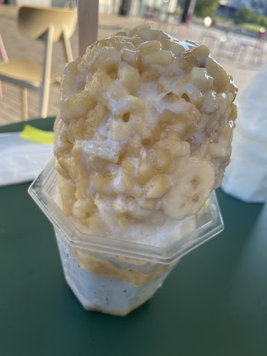 Read moreここのバナナのかき氷が好きなので久しぶりに並んで購入。並ぶ列は、西日で日差しが強い場所になりかなり待つのがきつい。並んでやっと中に入れて注文しても中の席は満席で待ちですと言われる。並んでる途中で今の状況も分からず、効率の悪い注文だと思う。並んでる間にタッチパネルなどで注文が出来ればもう少し早く購入出来ると思う。更に、室内の席に座れずテイクアウトや外の席を選んだ客はすぐに外に追い出されて暑い店外で出来るまで待たされる。注文前20分注文後15分も待った。