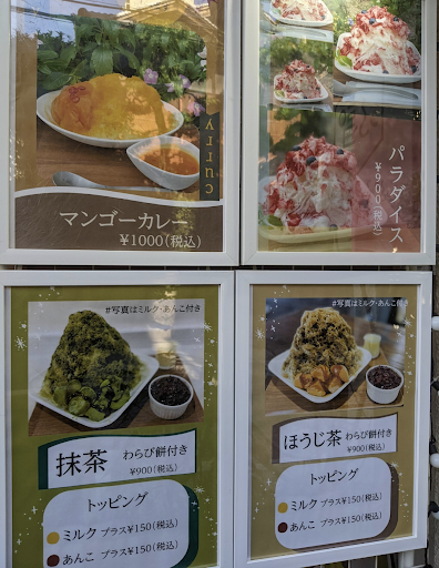 途中でテイクアウトにしようと思いましたが、カップがないと言われました。「テイクアウト」と書いてあるのですが、テイクアウト専用ですでに作ってあるそうです。なのでかき氷をその場で選んでテイクアウトはできません!!!