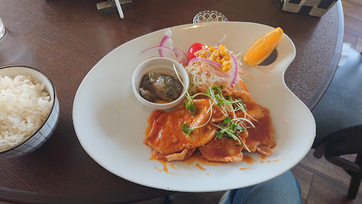 たまにお昼におじゃましますが、いつもお客は多く繁盛しています 私はこの店ではカレーを注文しますが、カレー屋なのにカレーを注文している人はあまり見かけず、日替りのランチを注文している人が多いようです この日は、私は初めて日替りランチ(税込820円)を注文、一緒に行った息子はカツカレー(税込950円)とミニサラダ(税込220円)を注文しました 本日の日替りランチの中で豚のしょうが焼を注文し、醤油味か味噌味かで味噌味の方を選択しました ごはんは中盛にしてもらいました 豚肉は薄切りのロース肉で4枚です その他小鉢入りのナスの煮浸しに野菜サラダが皿に乗っており、味噌汁がついていました 肉はそれほど生姜は効いていませんが、唐辛子のピリ辛でなかなか旨い 味噌汁も出汁が効いておりこれも旨い カレーはごはんの上に、カツの他カボチャのスライス、しし唐辛子、ニンジン、かいわれ大根が乗っています 辛口を希望したら中辛しかないとのことで辛味ソースをもらいましたが、そこそこな辛さになったと言っておりました カレールーは、特に特徴はなくオーソドックスなものですがなかなか美味しい 日替りランチは、飲み物もつきお得です また、ランチ、カレーともごはんは大盛無料です 息子のカレーを見ているとカレーが食べたくなった...