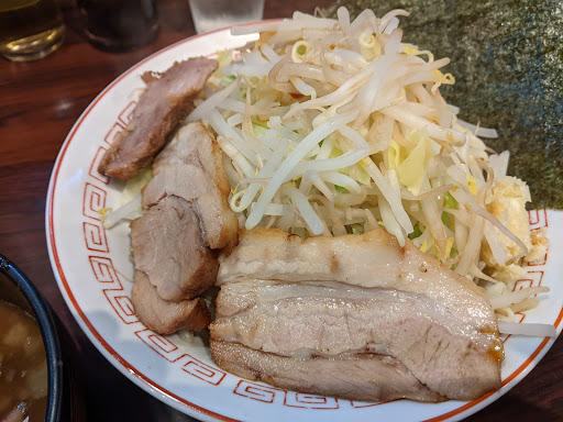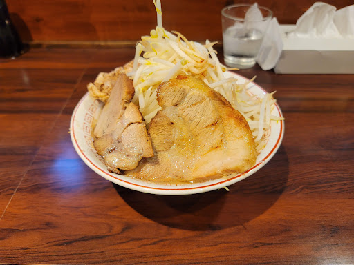 とんこつ野菜並を注文 全マシまでしか表示がなかったため、にんにくどうしますか?に全マシマシってできますか?と質問返し 三倍でいいですか?の確認に、じゃあそれでお願いします。 少しして、食べ切れるならまだ増やせますけどどうしますか?と聞かれたので、悩みながらならじゃあ四倍でお願いします。と回答 別皿無しで器にギリギリこぼれていないレベルのてんこ盛りが到着しました できるだけこぼさないよう野菜をアブラと一緒にチビチビ食っていたのですが、結局少しこぼれるしパンチが足りないように感じました アブラの味をもっと濃くするか、カラメをスープだけではなくヤサイにもかけてもらえていれば最初の物足りなさを軽減できそうな感じはします 物足りないのでカラメっぽい調味料をヤサイにかけましたが、汁まで素通りして汁が溢れてきてしまいました。 机と椅子まで濡らしてしまい申し訳なかったです。 ある程度拭きましたが、店員さんの手を煩わせてしまいました。 味についてはヤサイとアブラだと結局物足りなかったので麺を早めに掘り出しながらたべると、麺には味がついていたので物足りなさはなくなりました。 その頃になるとスープも掬えるようになっていたのと物量が減ってきてこぼさず食えるようになってきたので食が進むようになってきました。 ヤサイの量的には食楽と同程度、麺のワシワシ感が腹にたまる分こちらのほうが満腹度は少し高くなりそうでした。 2時頃の客が少ない時間の話ですが接客のやり取りが非常に丁寧でロット制でもなく、女性の一人客も後から来店されてニンニク抜きを注文されていたり、二郎系初心者にも優しそうなお店でした。 最初は食べにくかったので、次回以降は別皿提供の希望を出してみたり三倍で抑えるなり工夫してみたいと思います。 美味しくて満腹になったので満足度高めでした