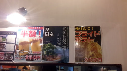 着席すると子供にはジュースが出てきた。食前だけど…。本店とは違ってお子様ラーメンは名物そばも選べた。お子様セットはなくちょっと足りないかな。 今日は、夏限定の冷麺を注文。見た目は名物そばの冷麺とか冷やし担々麺のようなミンチ・ネギが乗ったメンバーズでした。たべてみるとからしが添えたれており、スープは酢が聞いていて想像とは違ってピリ辛要素はなし。餃子のラー油をかけていただきました。 食後にソフトクリームを注文。でも透明のカップで出てきました。写真はコーンなのだから注文時に言って欲しかったです。ラーメンの提供も遅かったのと、子供にはおもちゃがつくけど声をか...