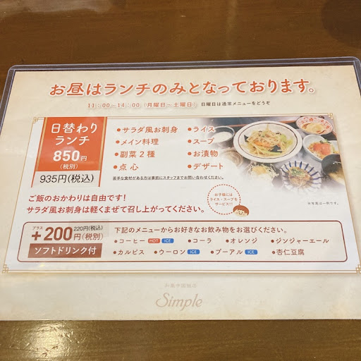 Read more気軽に中華が楽しめます。 お昼は日替わりランチのみで、今日もランチでお邪魔しました。 メインに小鉢3つ(サラダ風お刺身は小鉢じゃないかな?)に水餃子の天心がつくので、いろんな味を楽しめます。デザートの杏仁豆腐もついて1,000円以下はお手頃だと思います。